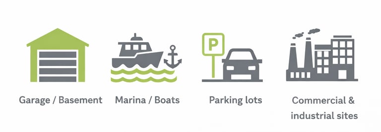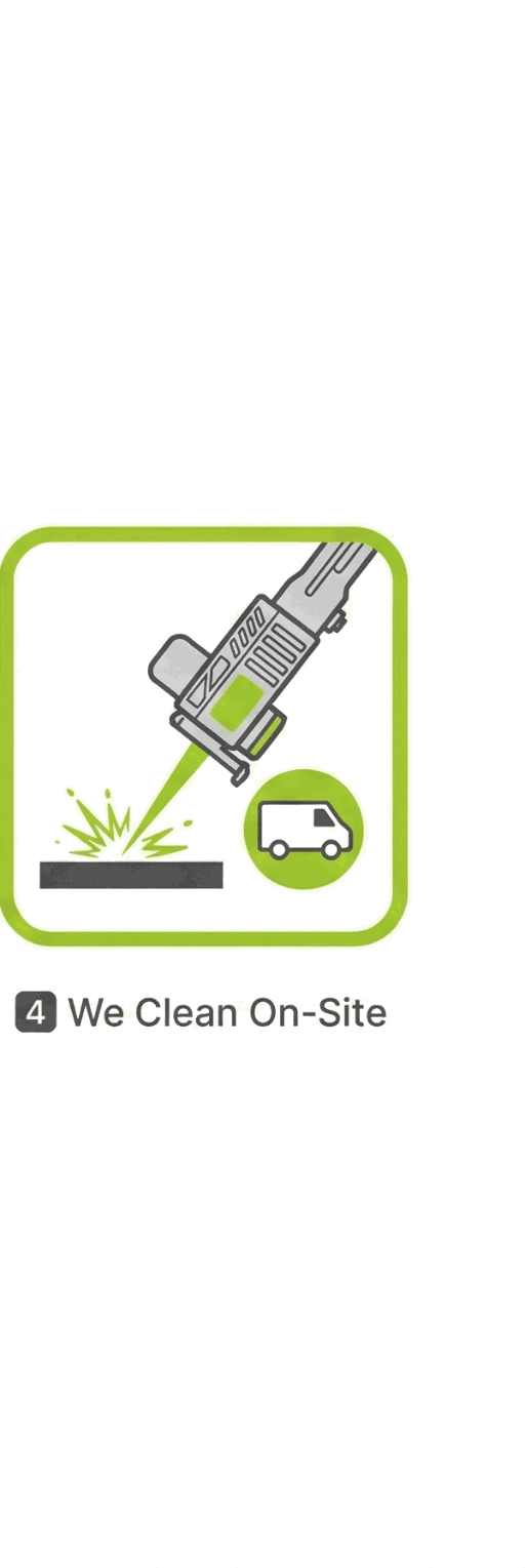 Our mobile laser cleaning unit allows us to work directly at your location — garage, basement, marina, parking lot, or commercial site.